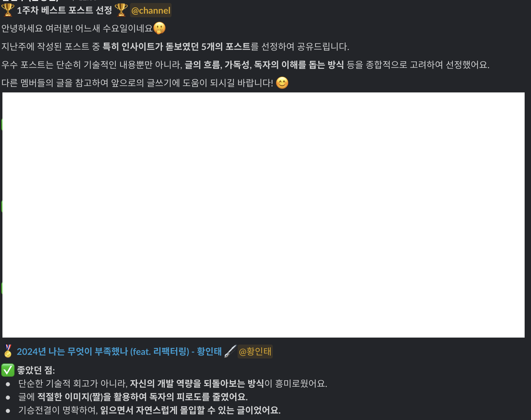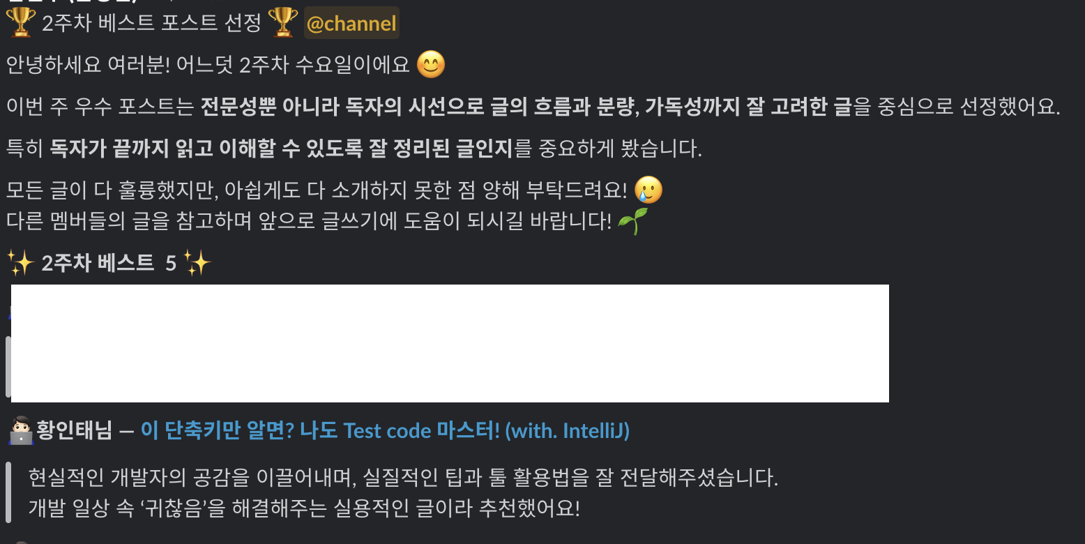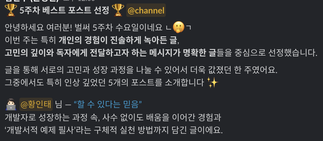 그리고 4주 연속 베스트 포스트에 선정되었다.🎉